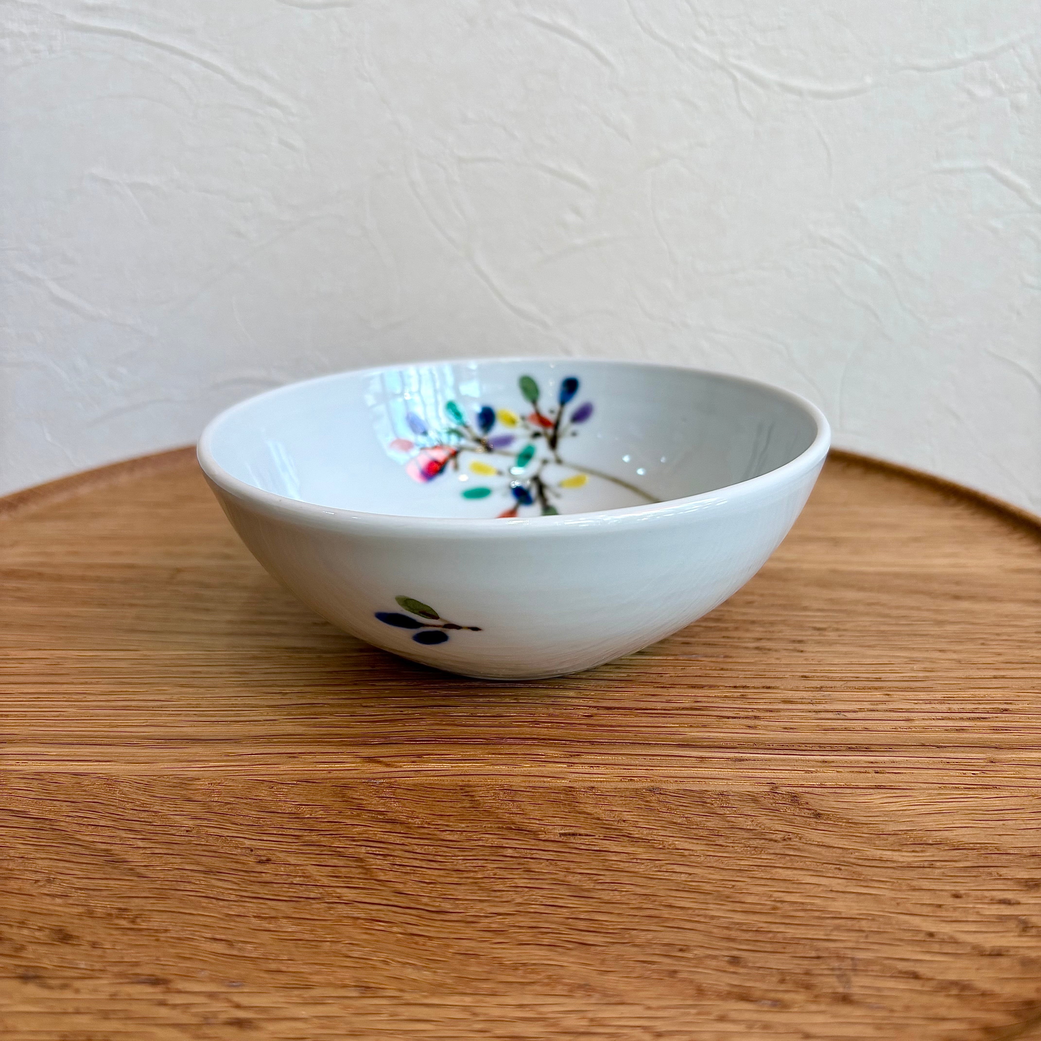 徳永遊心窯 色絵彩梢並べ(赤) 4寸鉢