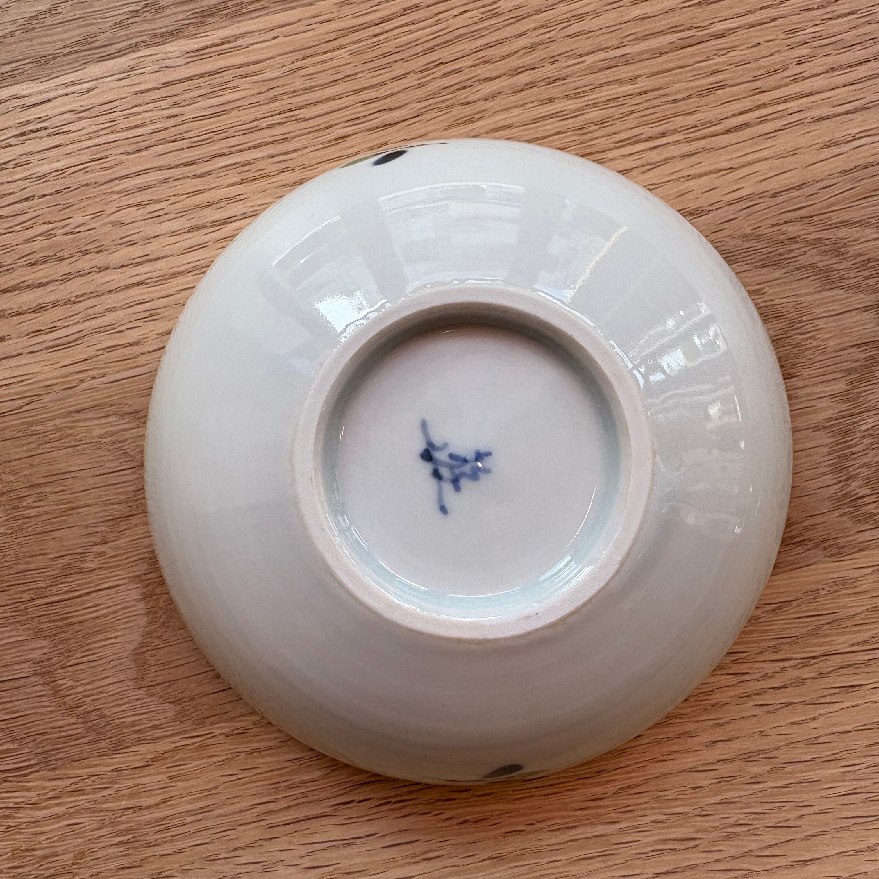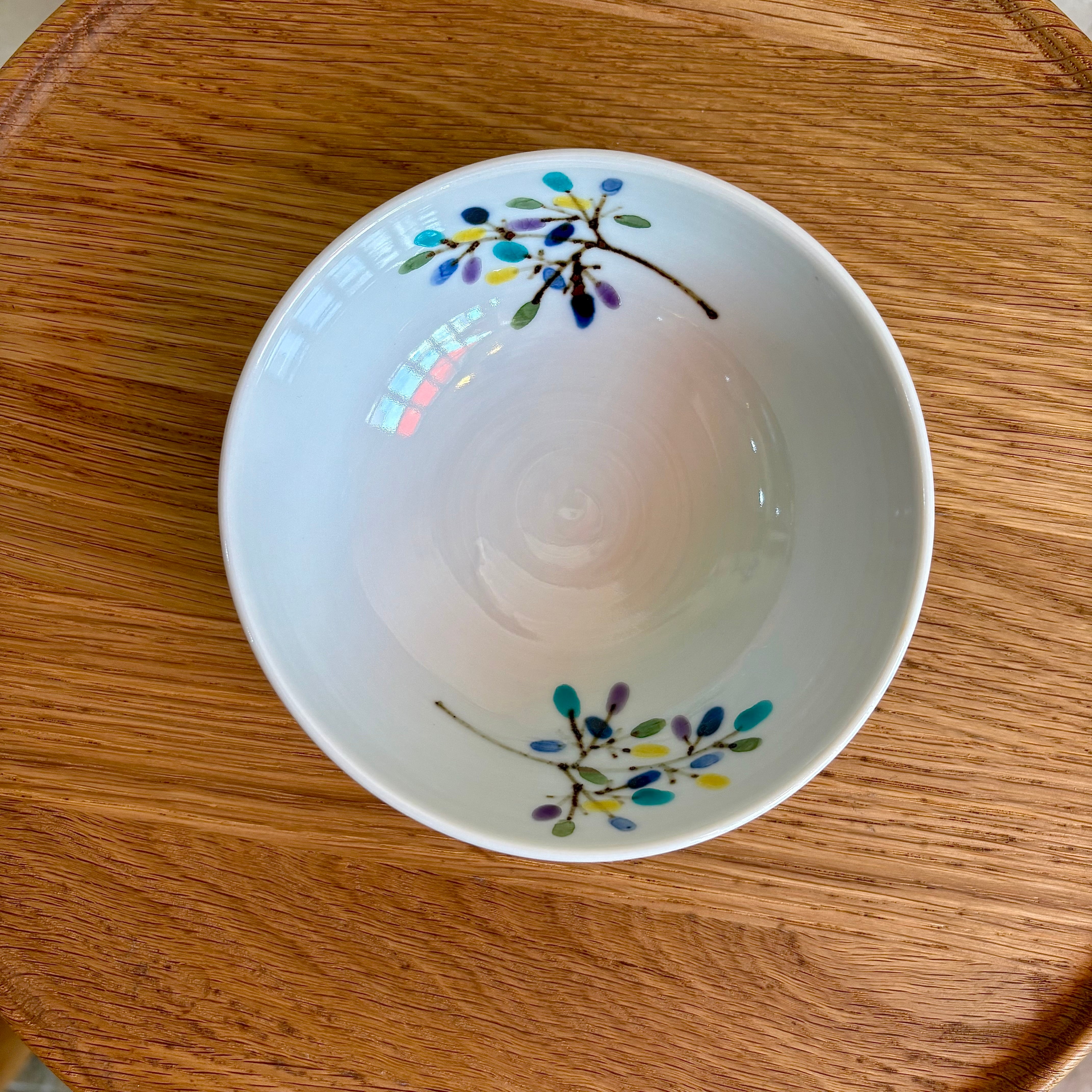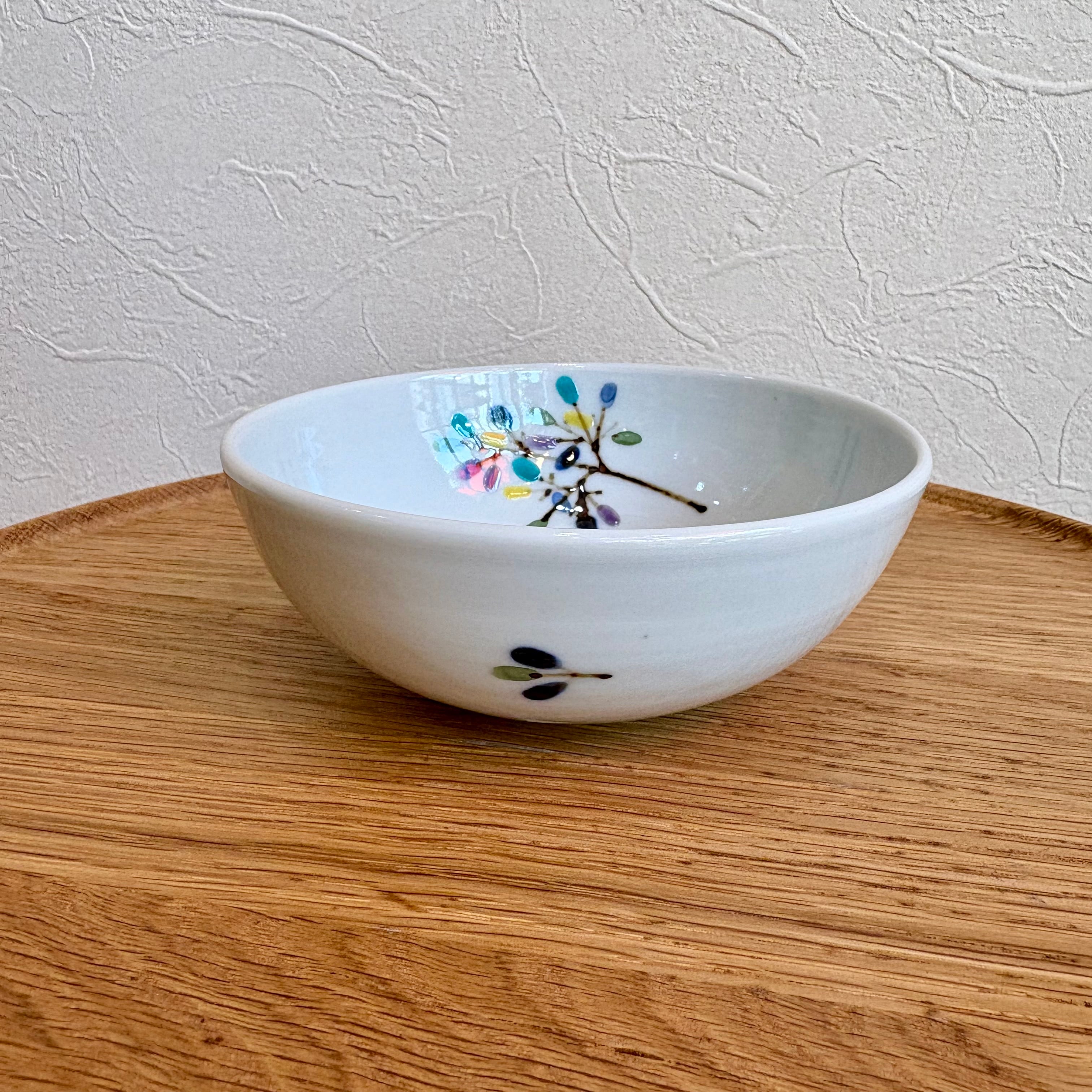 徳永遊心窯 色絵彩梢並べ(青) 4寸鉢